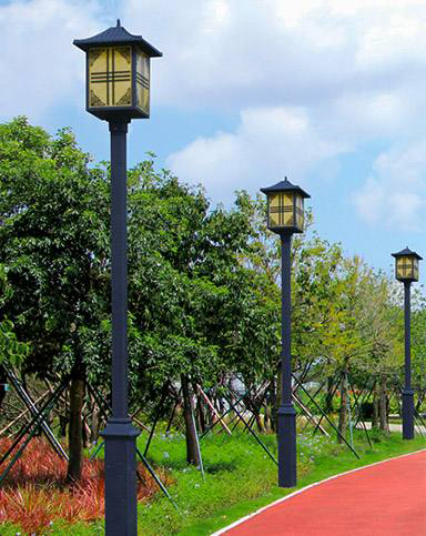 太阳能庭院灯照明采用功率相当于70W白炽灯亮度的CCFL无机灯管,灯柱高3m,灯管寿命大于20000小时;电源采用35w单晶硅太阳能电池板,光控定时开关。质量保证期25年,25年后电池组件能继续使用,但发电量略有下降。发电系统具有抗台风、抗潮湿、抗紫外线辐射等特点。系统可以在一40℃~70℃环境下确保日工作时间4~6小时;如遇连续阴雨天数,将平时多余的电能储存在蓄电池内,可确保用户在阴雨天气连续2~3天仍有足够的电源可以正常使用。每盏太阳能庭院灯的成本为3000~4000元。将光伏庭院灯与普通庭院灯进行分析比较:光伏庭院灯初装价为普通庭院灯的120%~136%,使用两年后两者综合成本基本持平。